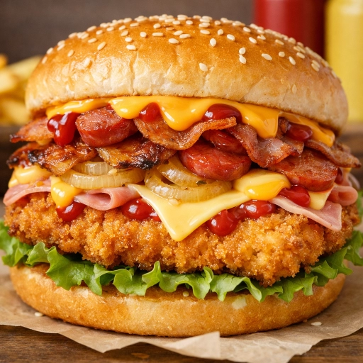 Carne, queijo, bacon, presunto, alface fresquinhos e cebola caramelizada exclusiva do Galinha.